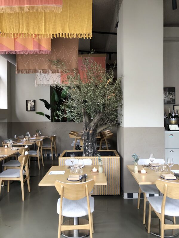 Binnen worden we blij van het interieur. Lichthouten tafels en stoelen die mijn zusje direct herkent van haar reis door Japan. Zuid-Amerikaanse doeken aan het plafond en grote ramen die de ruimte vullen met zacht licht. De loungemuziek maakt het helemaal af. Het is rustig, warm en stijlvol.