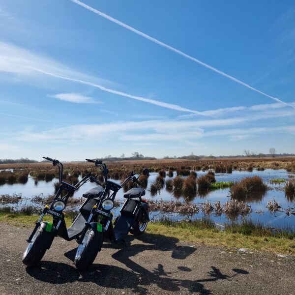 Welke je ook kiest, je trekt gegarandeerd de aandacht 😉 De e-choppers zijn een toffe variant van een elektrische scooter. De e-choppers hebben een bereik van ca 35 kilometer bij 3 uur huur en ca 25 kilometer bij 2 uur huur. Ze mogen maximaal 25 km/u. Rijbewijs verplicht. Geen rijbewijs? Kies dan voor de e-fatbike. Dit is een stoere elektrische fiets.