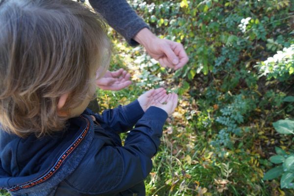Ik neem mijn kinderen mee. Want ook al zijn ze nog zo jong, ik vind het wel mooi dat ze meekrijgen dat ons eten gewoon buiten te vinden is. Bovendien: hoe mooi het is om naar de natuur te kijken en hoe leuk is het om ‘wild’ proeven. Maarrrrr, weet wat je eet. De regel van Sanne (‘als je het niet kent, eet het dan niet’) herhaal ik duidelijk voor de kinderen. Want niet alle besjes kun je immers zomaar eten.